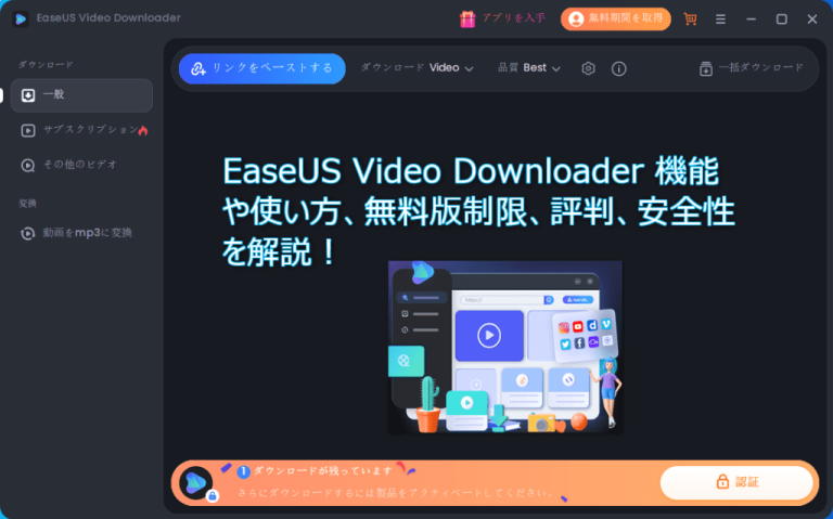 総じて、EaseUS Video Downloaderは使いやすく、機能が充実しているため、動画ダウンロードを行いたい方にとって良い選択肢だとなるでしょう。
